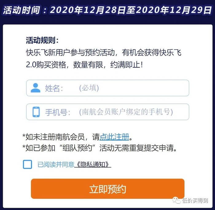 预约时填写姓名与手机号(需绑定南航会员)即可。