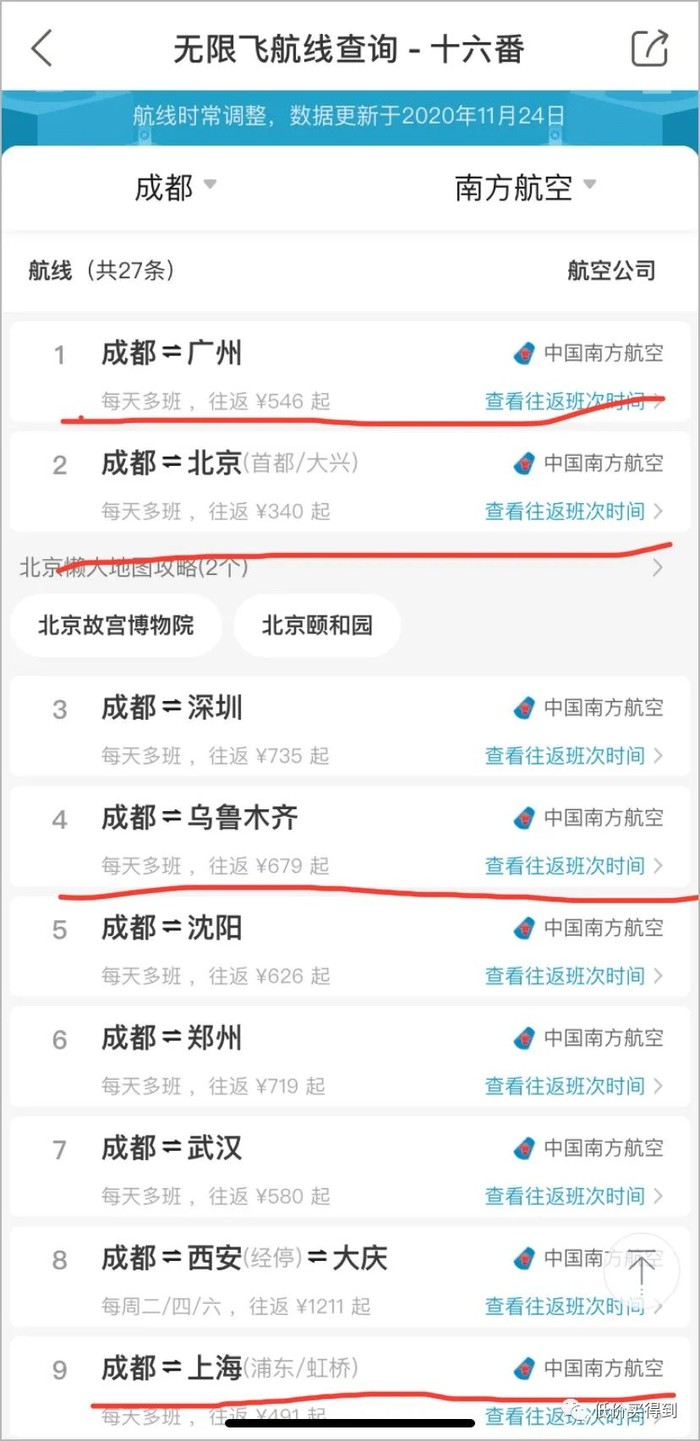 乌鲁木齐、重庆、郑州、大连、北京、长沙、武汉、沈阳等地出发,航线数量也不少。以上这些城市的朋友,如果明年有频繁飞行的需求,就先预约南航快乐飞2.0吧。