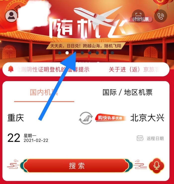 每日10:00-24:00可通过中国联合航空APP或M网“随机飞”入口查询当日目的地。