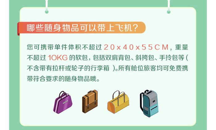 不含免费行李托运,只能随身携带一个软包。