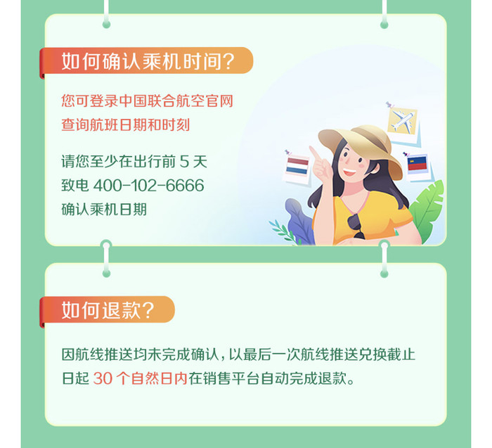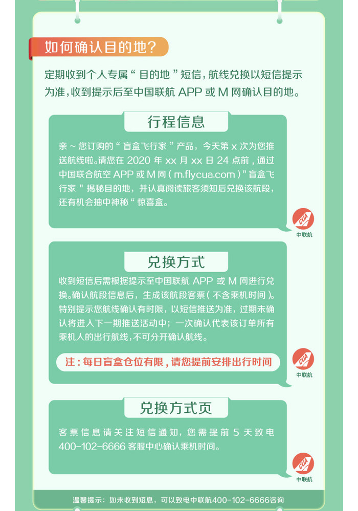 每周推送的航班,对应旅行时间范围如下,具体有效期以收到的短信为准。