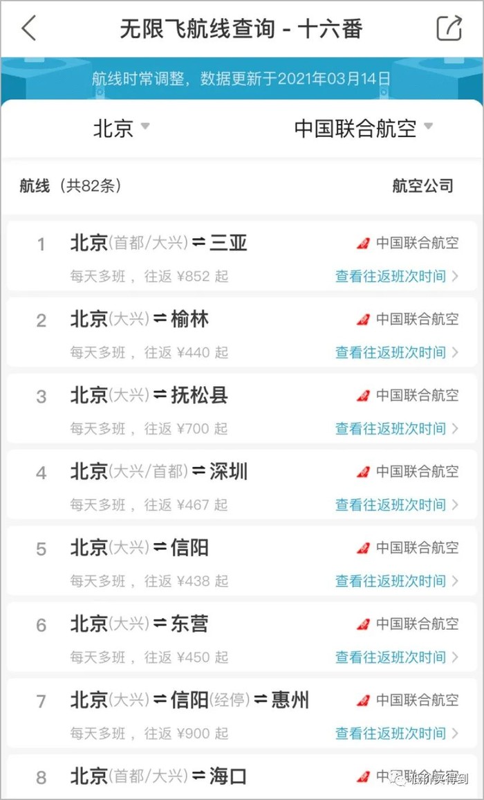 比如这是中国联合航空北京出发的航线,真的挺多的。