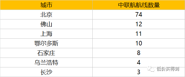 之前汇总了部分城市中联航的航线数量: