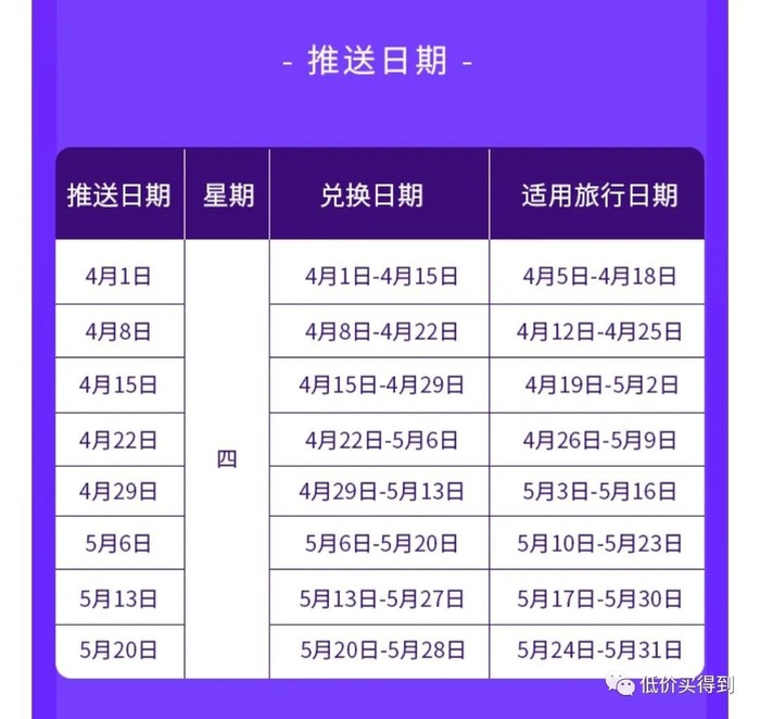 4.1开始,每周四推送目的地,对应出行日期如下。五一出行,重点关注4.22推送的目的地。