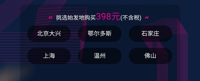 目前可选出发地包括北京、上海、鄂尔多斯、石家庄、温州、佛山: