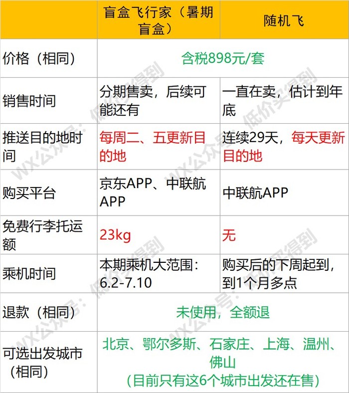 “中联航随机飞”与“中联航盲盒飞行家”的区别