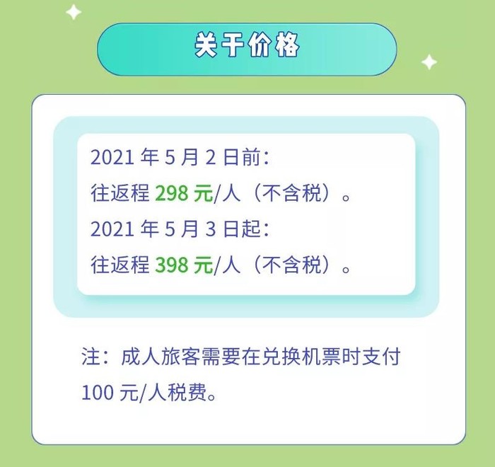 【5.4更新】原价298元的随机飞,5月3日起变为398元了,可兑换往返机票一套(去程+回程),加上税费往返498元,暂不确定购买结束时间。
