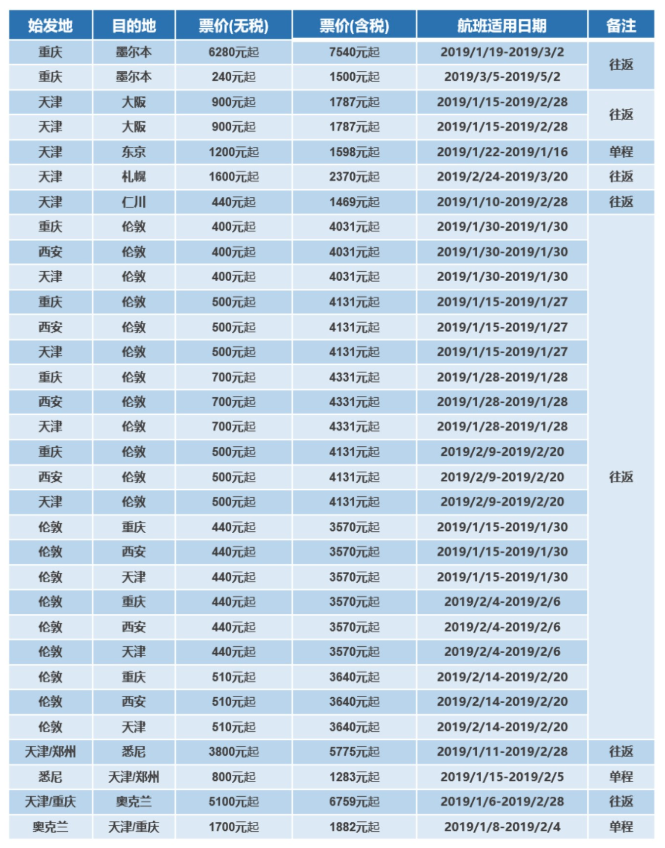 适用航班日期: