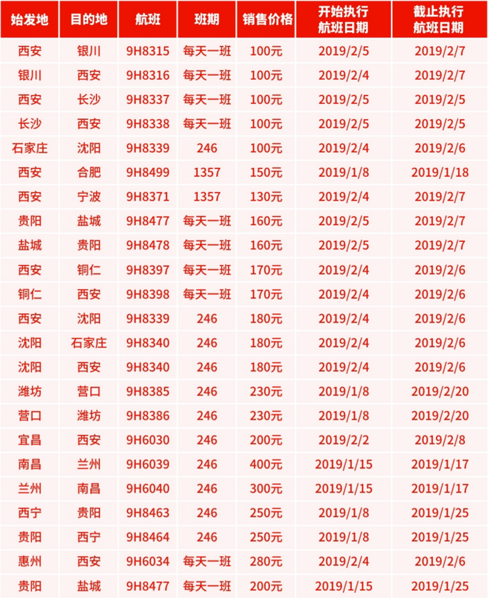 长安航空参与活动航线 ▼