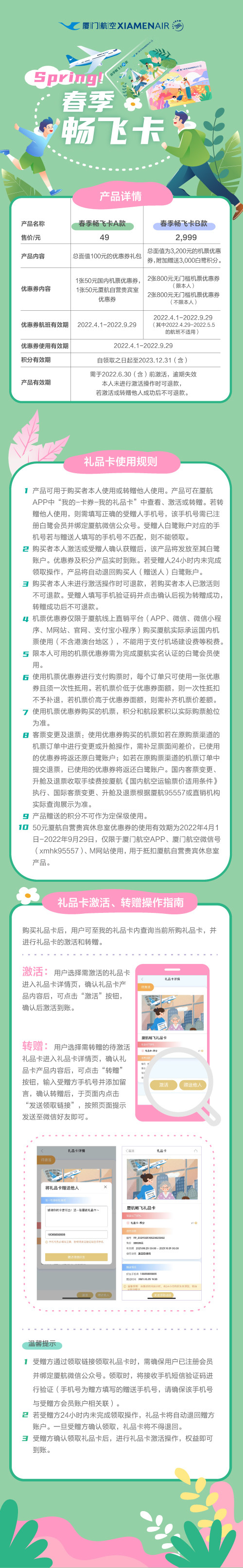 春季畅飞卡具体规则: