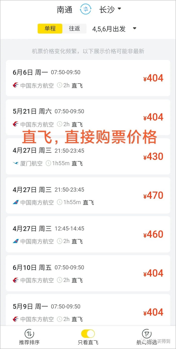 南通飞长沙,直接购票单程票价400元起。厦航全新飞仅299,至少便宜100元。