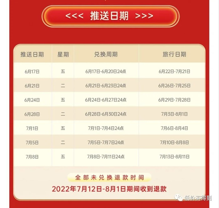 6.17~7.8,每周二、周五更新目的地,对应的出行日期如下:
