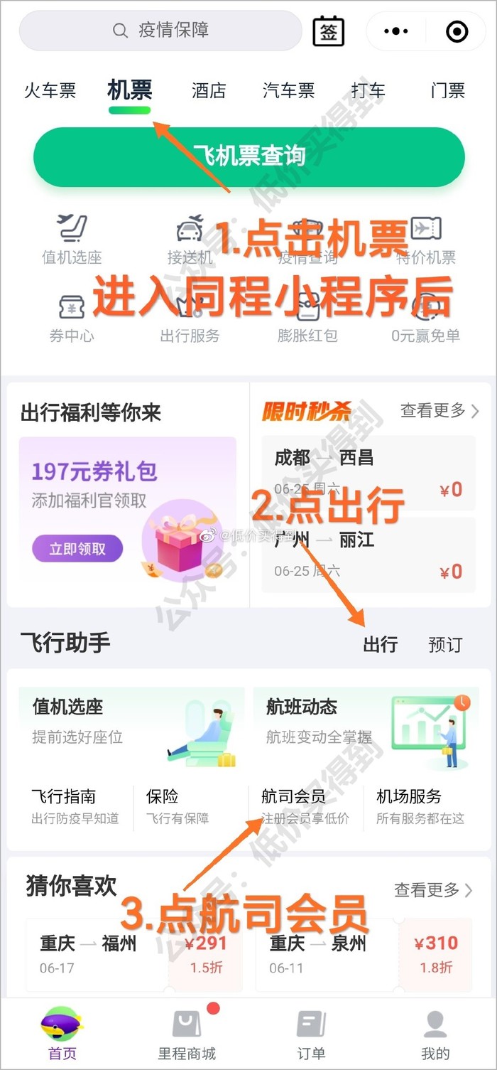 渠道3:【同程旅游小程序,1300元起,海航公务舱2次卡】兑票后,送50元景区券+70元酒店券。
