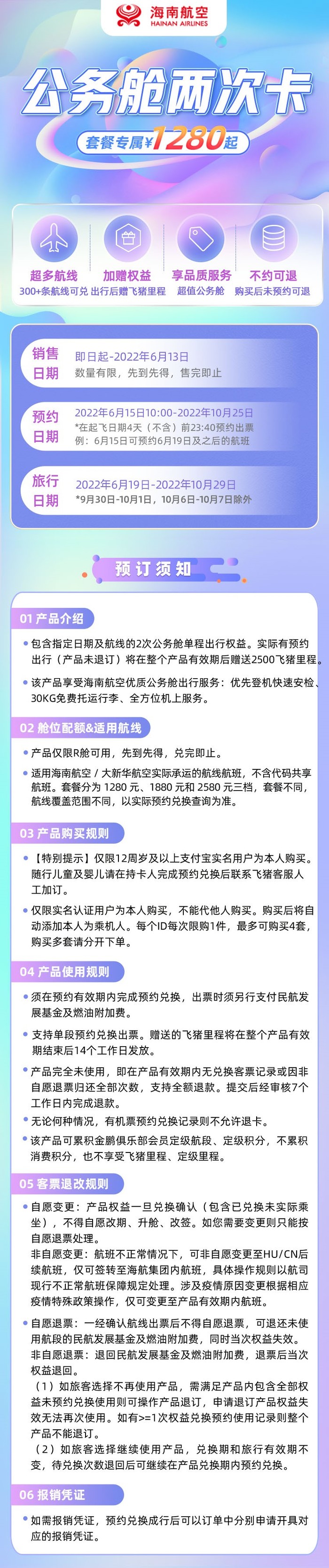 海航公务舱2次卡也是在几个渠道都有售。仅限12周岁及以上成人购买适用。