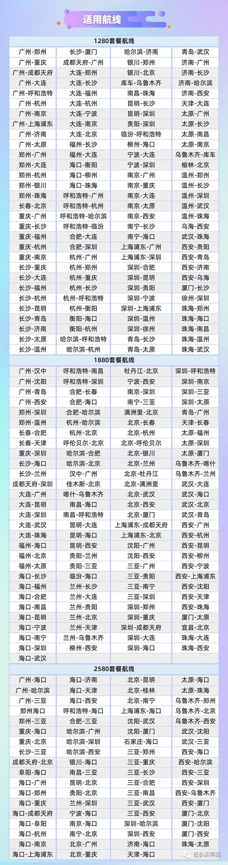 最便宜这一档里也包含了进出广州、海口、长沙、大连、西安、昆明、重庆等热门航线。比如: