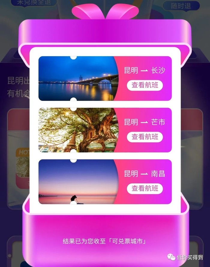 开盒后最多推送3条航线,像长沙,航线范围本来就不多,命中长沙-昆明、长沙-烟台的率可能非常高。