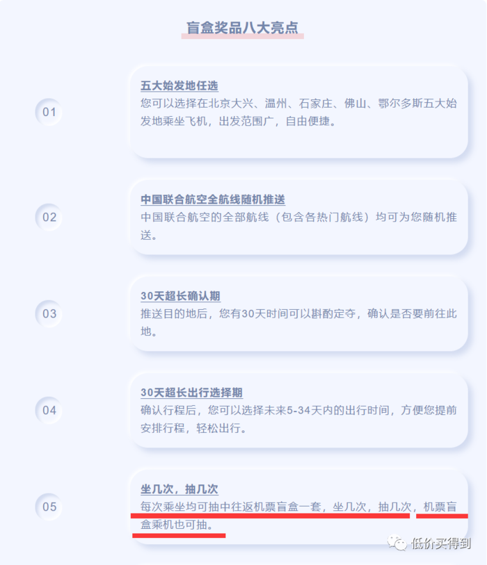 没有票价限制,购买特价票乘机、机票盲盒乘机(包括“随机飞”机票盲盒),都可以抽!!!