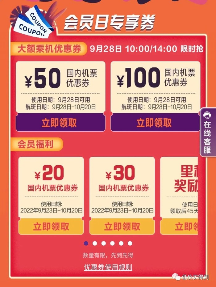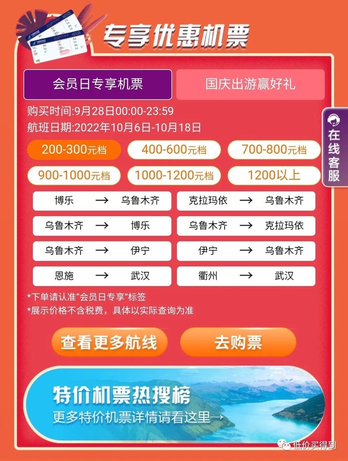 会员日专享优惠机票;