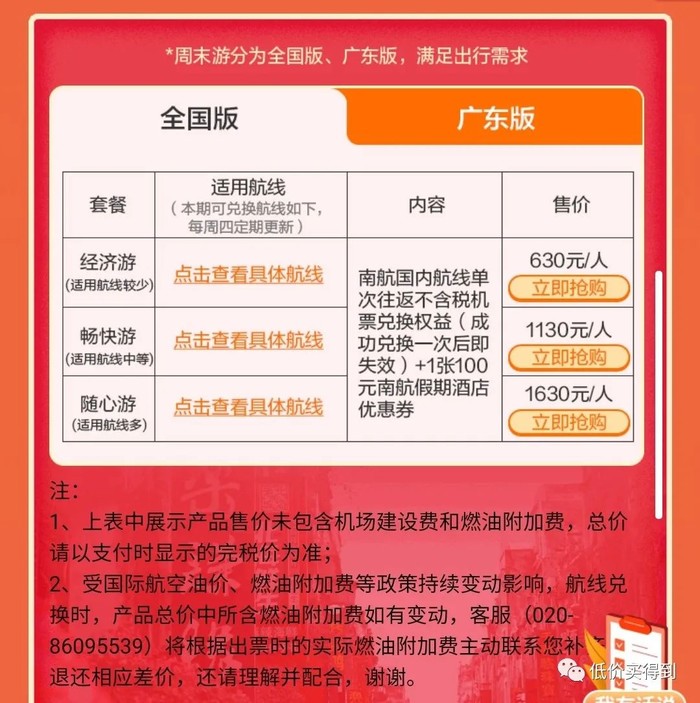 周末游广东版:广东省内航线单次往返,290元起/人,税费另付。