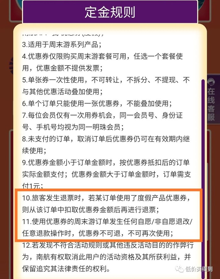 但是看规则,100元优惠券使用后,定金就不能退(无论周末游产品是否退掉)。