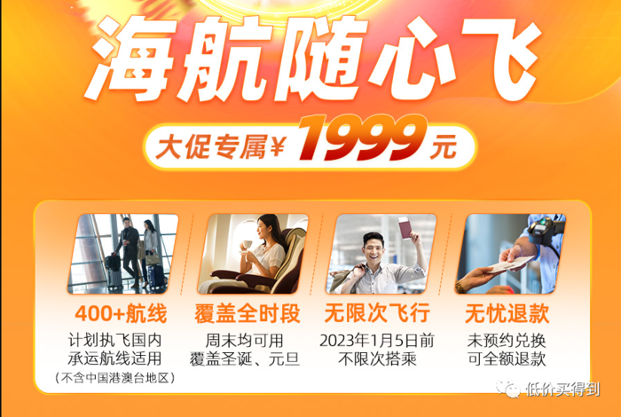 1999元/套,每套由一人使用,在适用航班日期内,可不限总次数搭乘海南航空/大新华航空实际承运国内自营航班。大约有400多条航线可选。