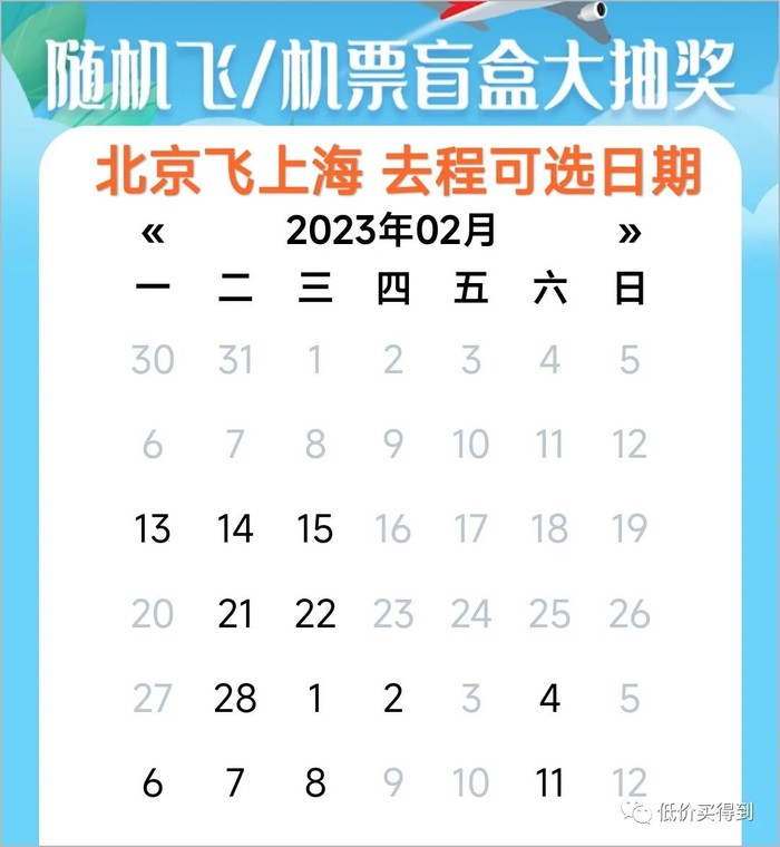 购买“随机飞”盲盒之后第2天,就是开始连续90天,每天随机推送目的地,看到合适的航班就可以兑换往返机票,税费另付。