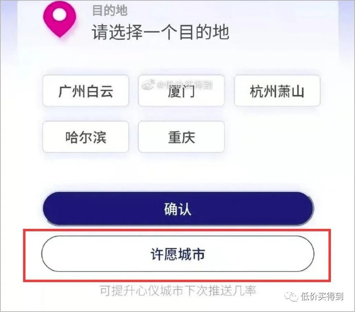 在中联航APP的兑票页面,可选择3个许愿城市,增加开出这些城市的概率。