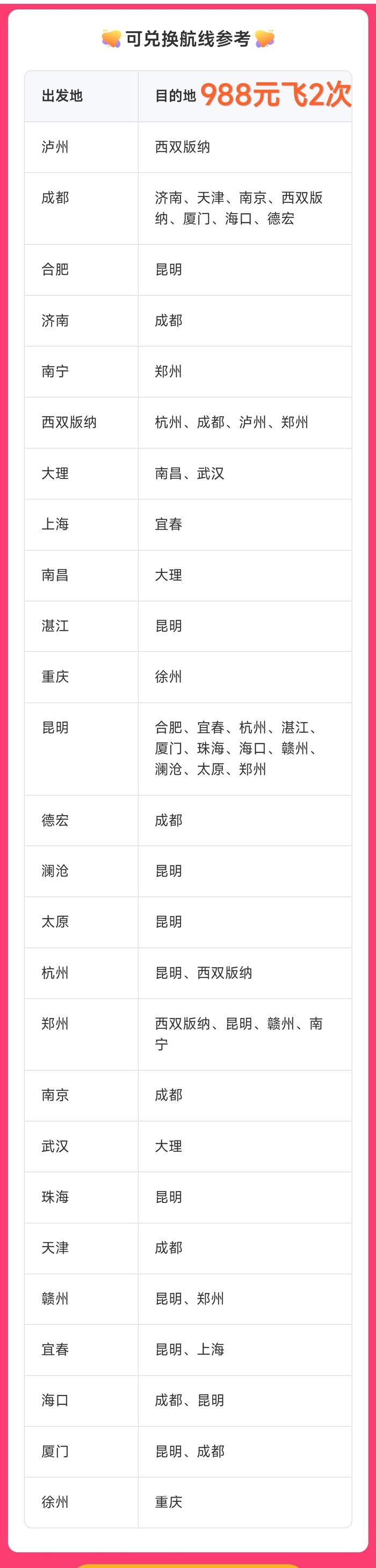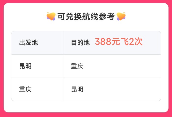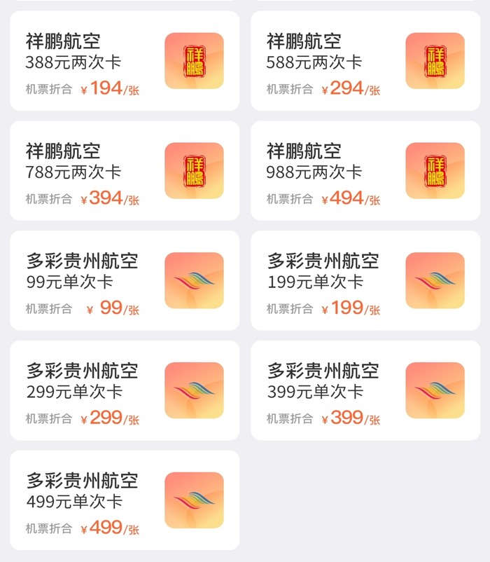祥鹏航空两次卡,388元起,飞2次,税费另付,未兑可退。