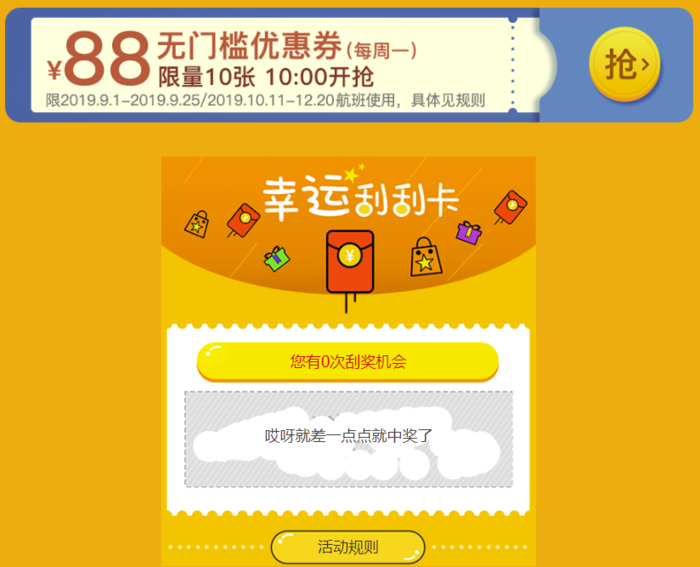 2.活动期间,每个春秋航空会员账号限制领取1次,数量有限,领完即止;