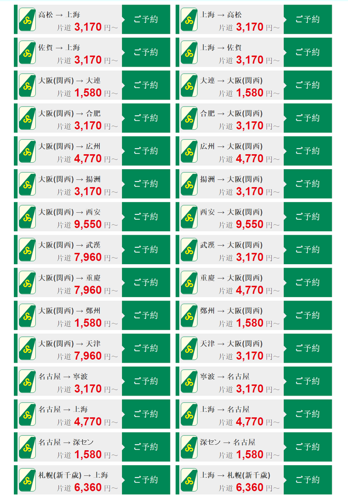 上海、大连、合肥、广州、扬州、西安、重庆、武汉、郑州、天津、深圳、宁波往返日本,含税约合人民币544元起。