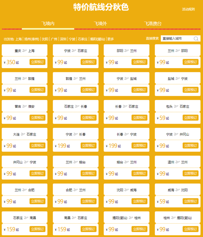 部分航线如下,全部航线可前往活动页面(网页链接)查看
