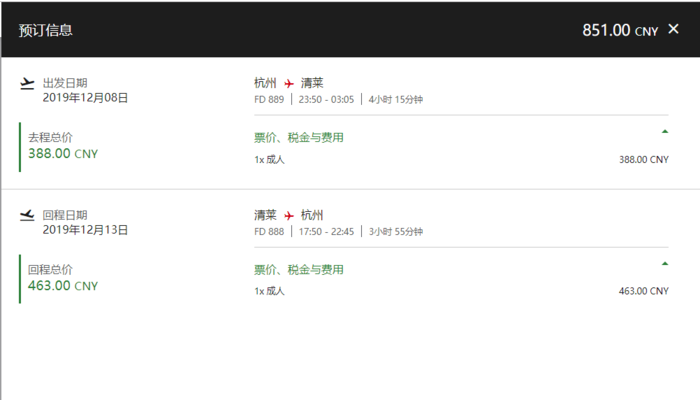 - 本次国内出发,单程含税不超过400的票,基本都可以关注,特别是多地往返马来西亚的票,都挺便宜。北京出发,单程含税500左右,也非常推荐!