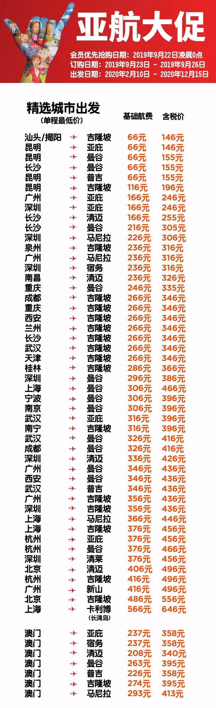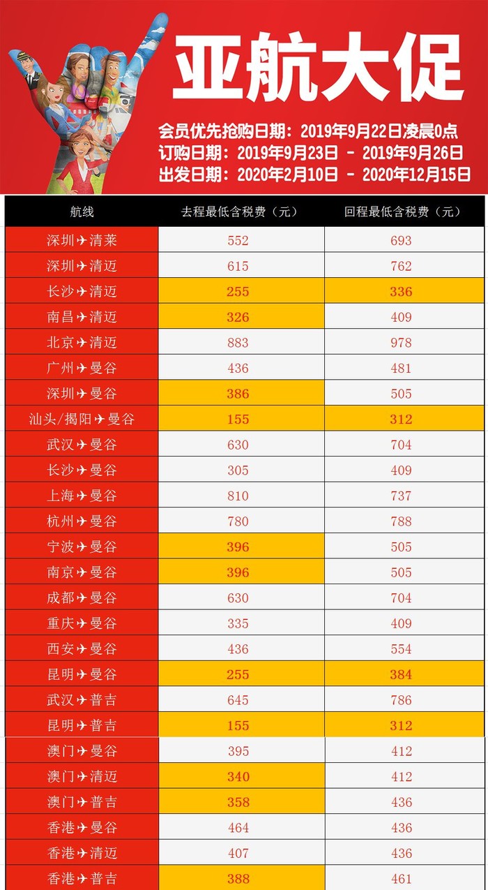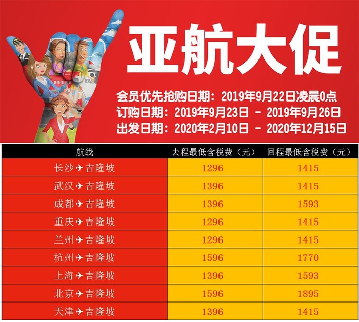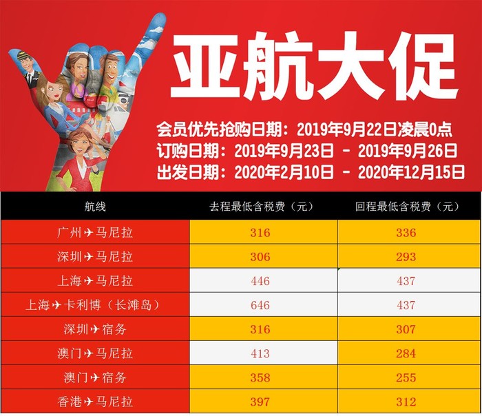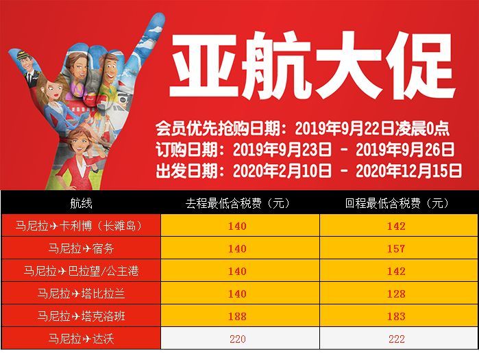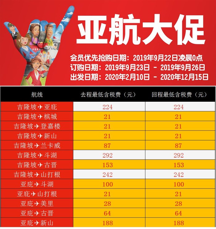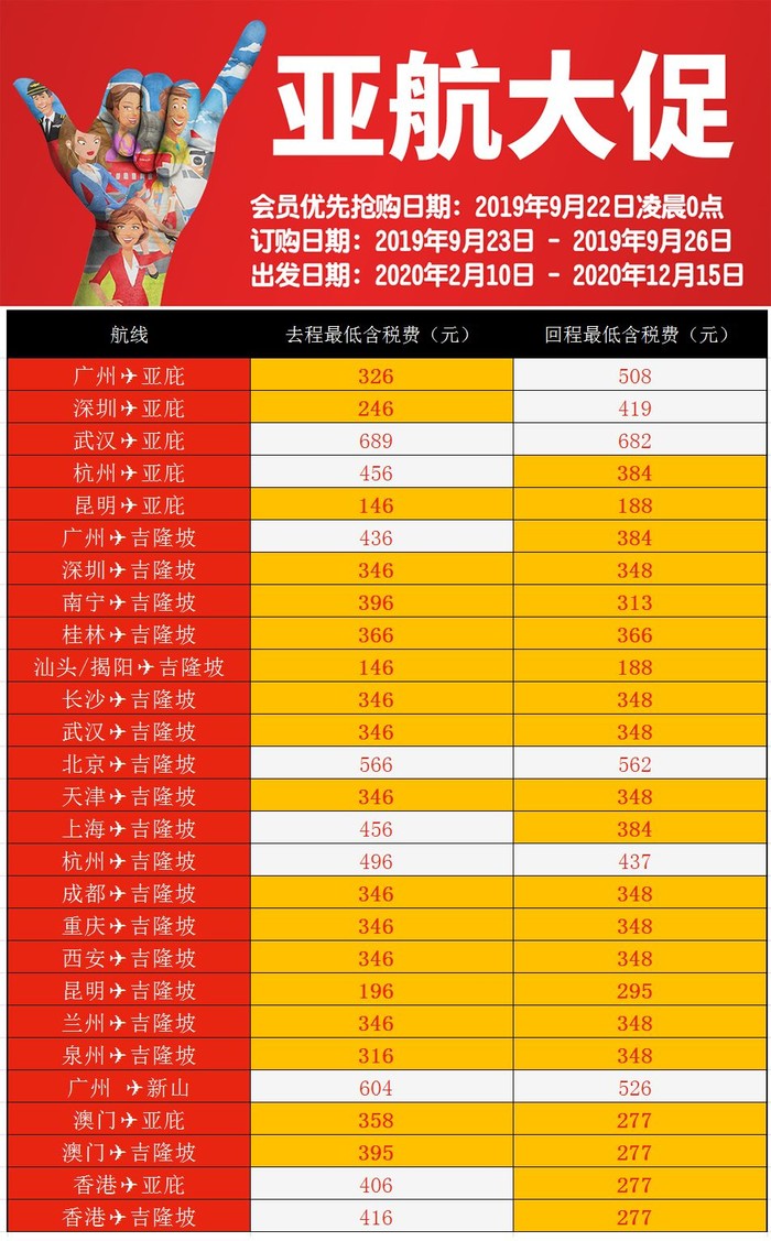 会员优先抢购日期:2019年9月22日凌晨0点(建议大家可以提前注册一下亚航会员)