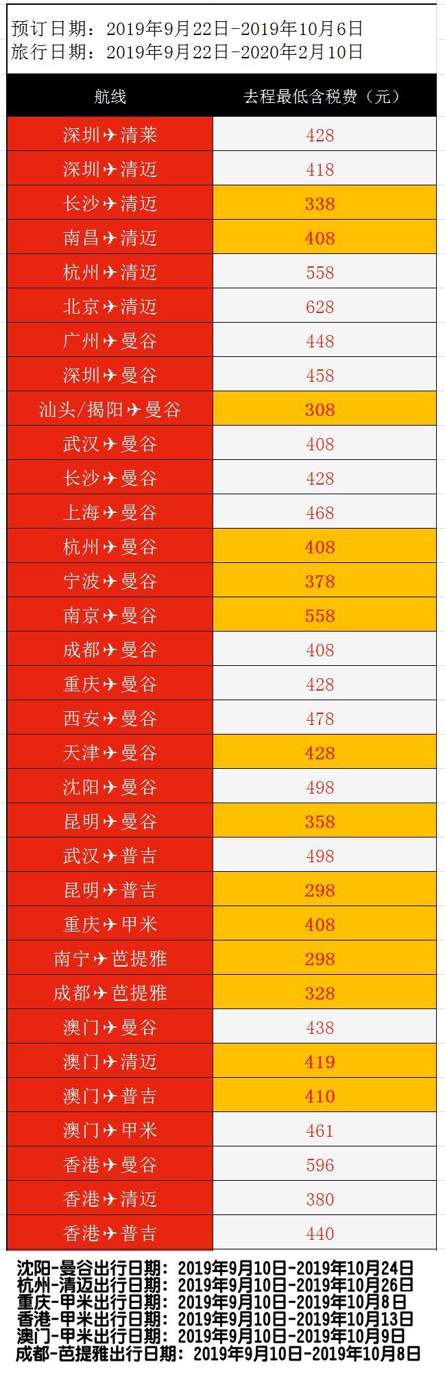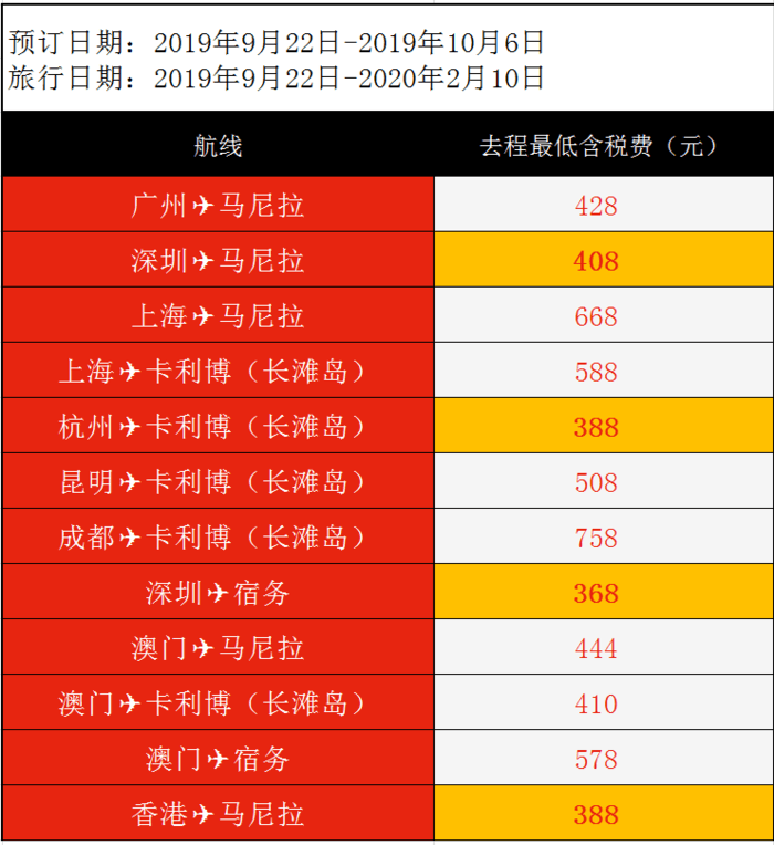 还有其他航司飞泰国、菲律宾的特价,可以看后文~