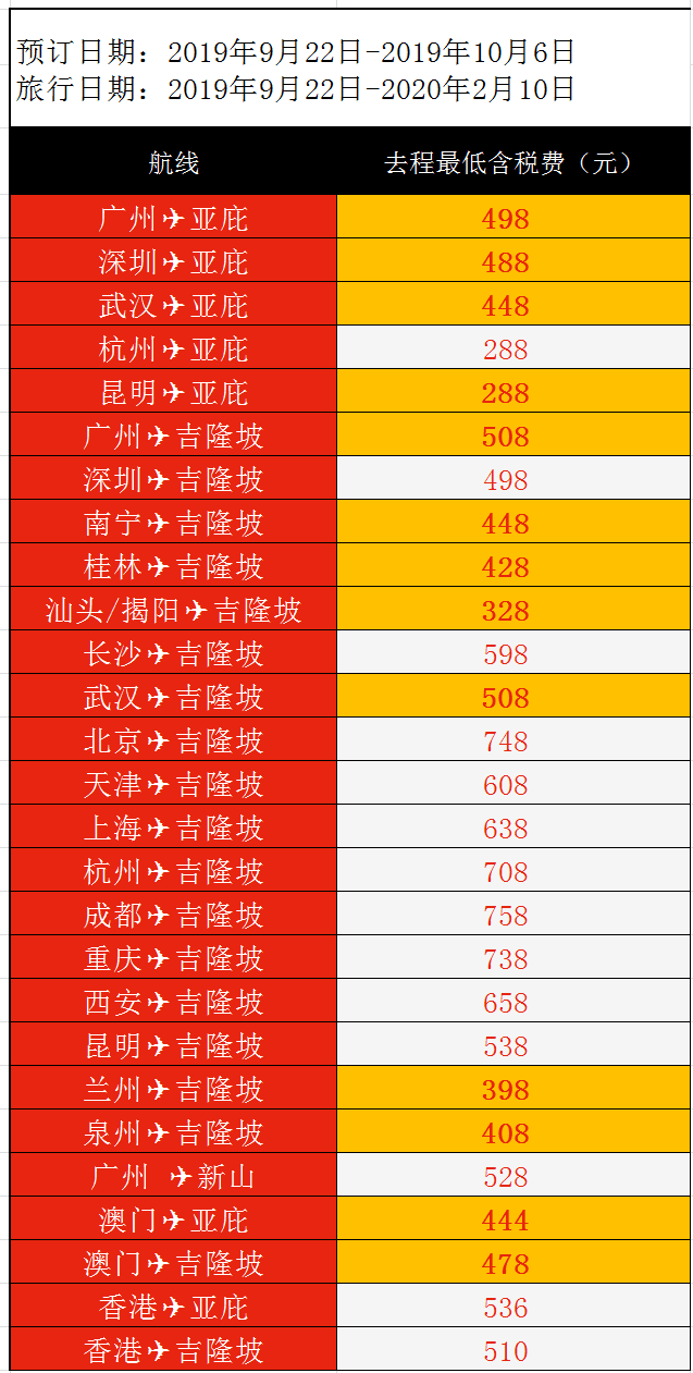 除了亚航大促,还有其他一些好价格:
