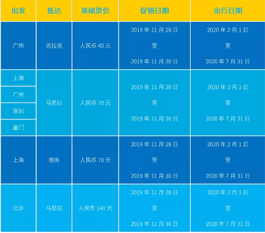 广州—马尼拉航线价格从不含税70元降至40元;含税276元降至含税246元。北京—马尼拉航线从不含税330元降至140元,含税598元降至含税408元。