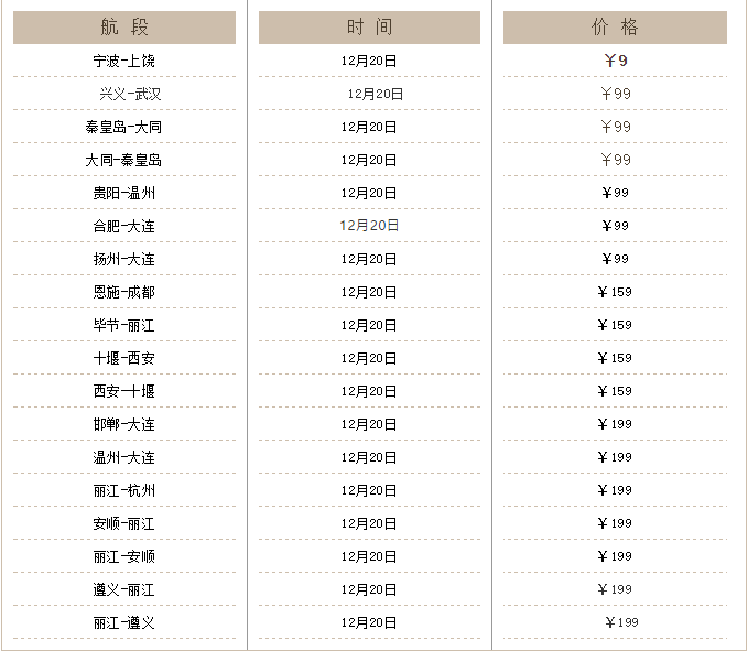 9元起,抢购国内机票,航线如下: