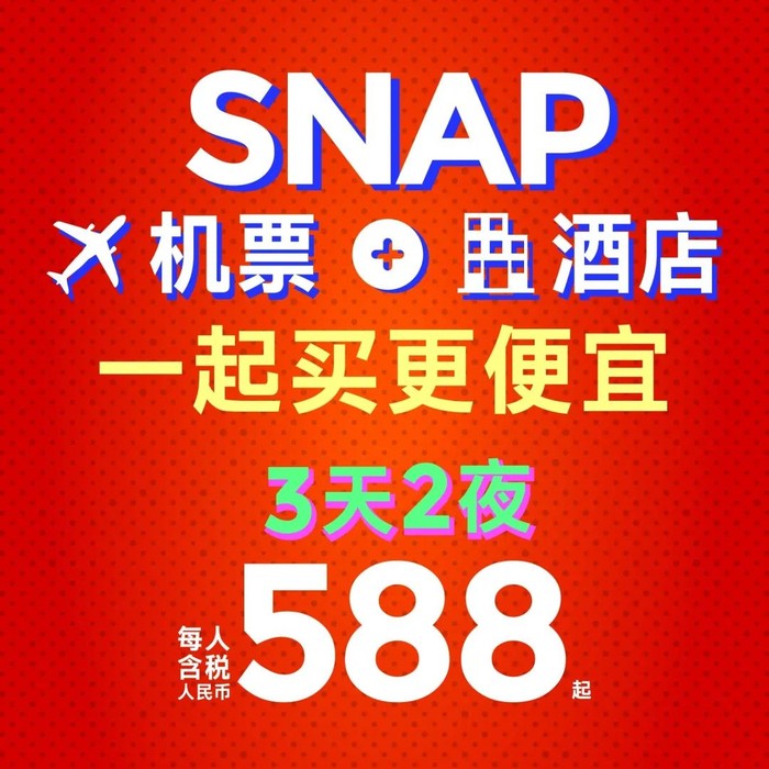 除了机票特价,大促期间,SNAP(机票+酒店)同样也有促销套餐噢!