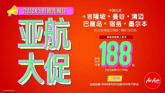 亚航BIG会员可提前购票,2020年3月8日凌晨0点开始