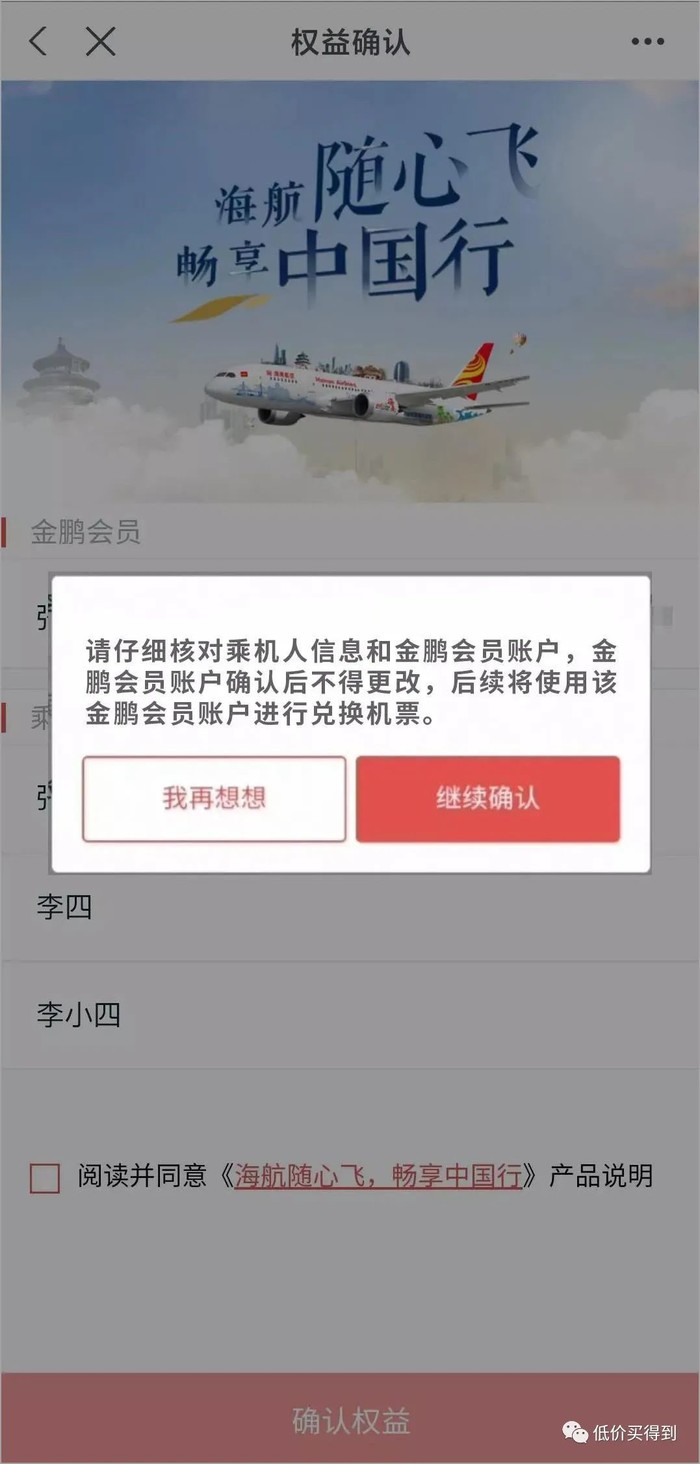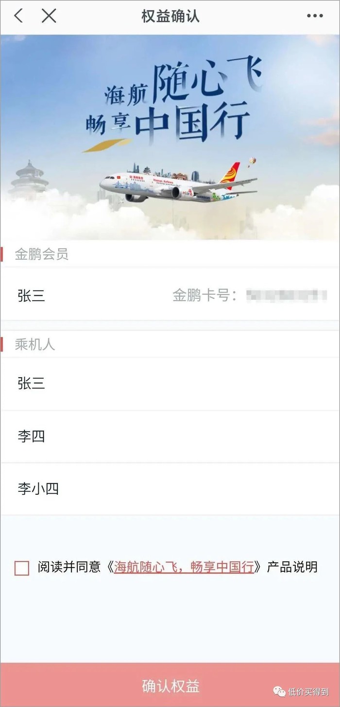 大家购买成功后,一定要记得在次日中午12点起15天内(含次日),使用海南航空APP进行权益确认!