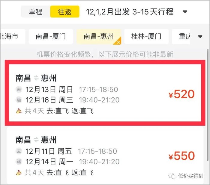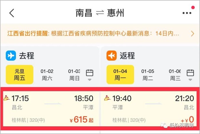 南昌往返惠州,元旦出行(1.1出发,1.4返回),直接购票含税715元。