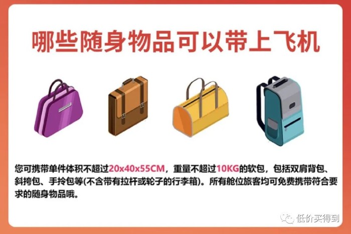 中联航的盲盒没有免费托运行李额!只能携带手提行李包(不含带有拉杆或轮子的行李箱),重量不超过10kg,体积不超过20*40*55cm;