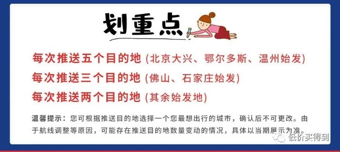 其中北京大兴、鄂尔多斯、温州始发,每次推送5个可选目的地;