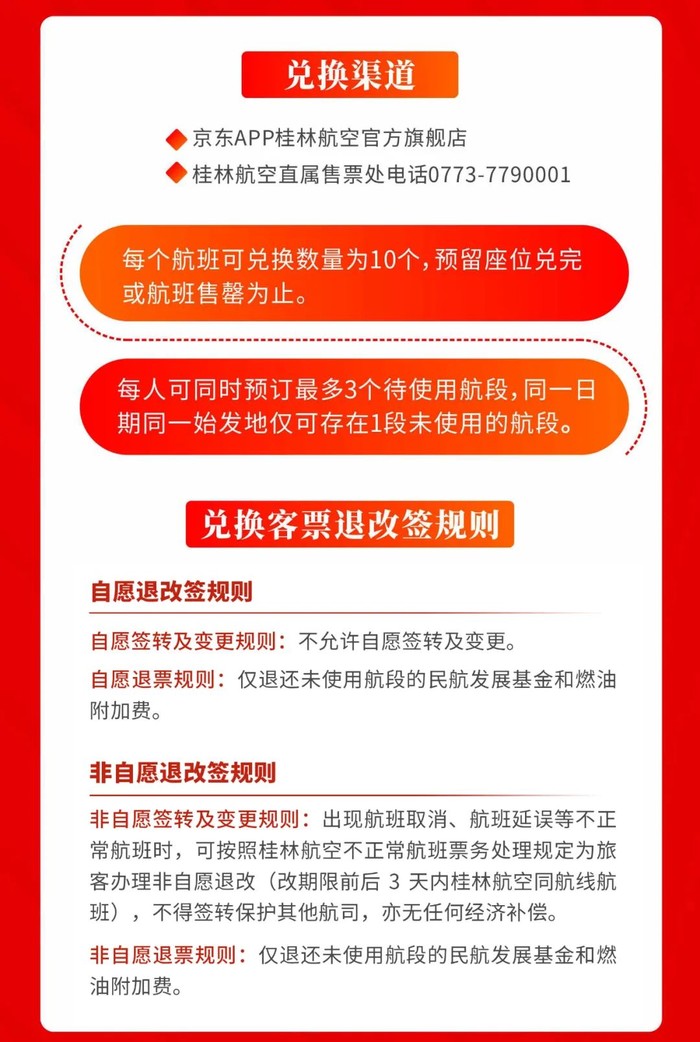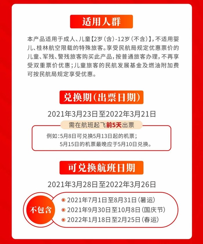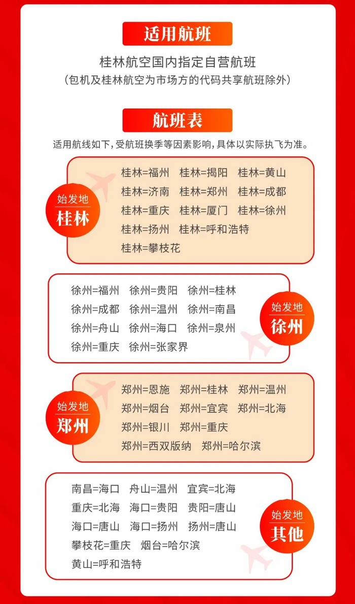适用于桂林航空国内指定自营航线