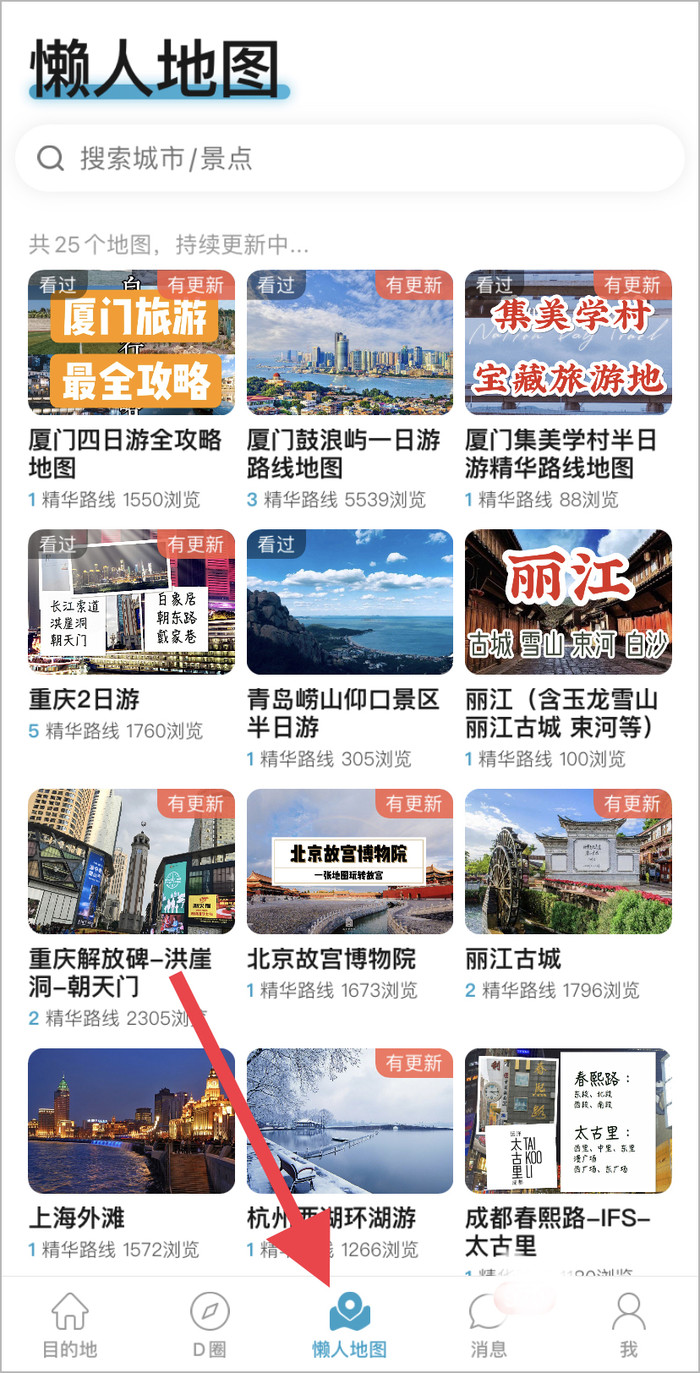 十六番旅行APP 新功能“懒人地图”,不仅可以看到旅行线路,还能看到哪里好玩哪里好吃,要怎么避坑等关键信息。既可以作为行前参考,又可以当做旅途中的地图、路书!有了“懒人地图”,说走就走!目前四川、三亚、重庆、厦门、云南、广州、上海、北京的地图都已经上线!