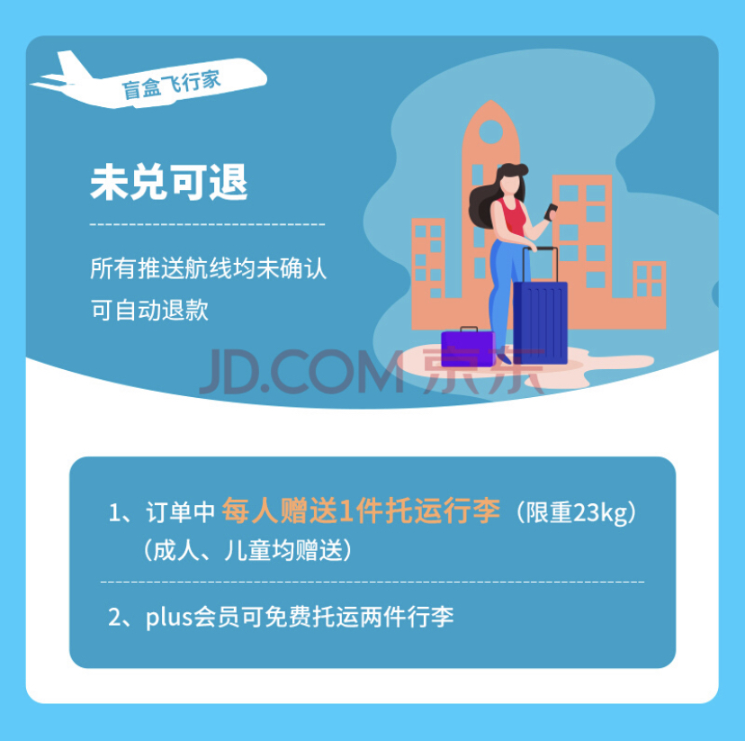 京东plus会员可免费托运两件行李。