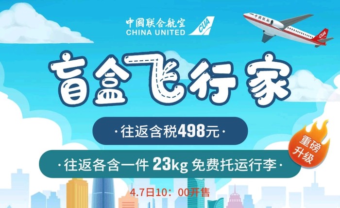 中联航盲盒4月7日再次开卖。你自己选择出发地,中联航每周随机给你分配目的地,遇到你想要的目的地,就可以兑换去程+回程机票,未兑换机票可退款。