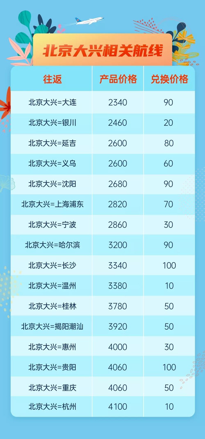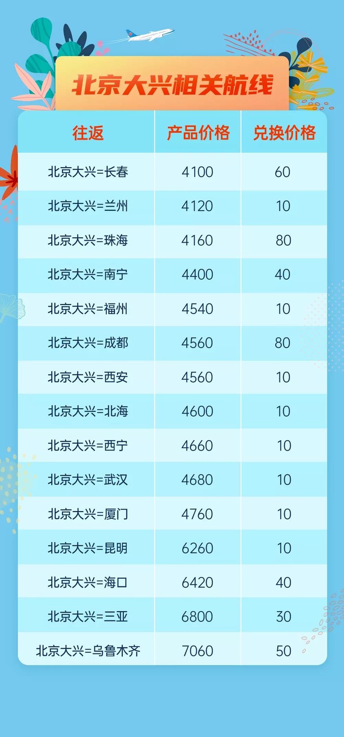 双城往返,儿童也可用:兑换日期为即日起至2021年6月25日,可多次低价兑换国内两个指定城市机场间经济舱往返机票!可选择航线与价格: