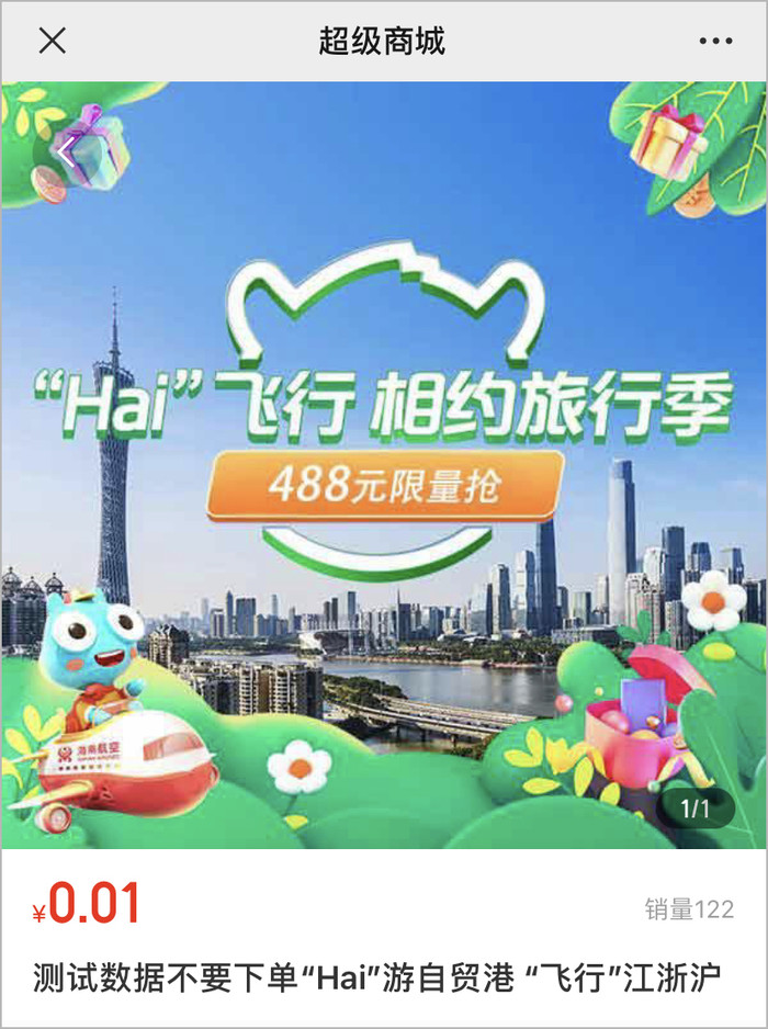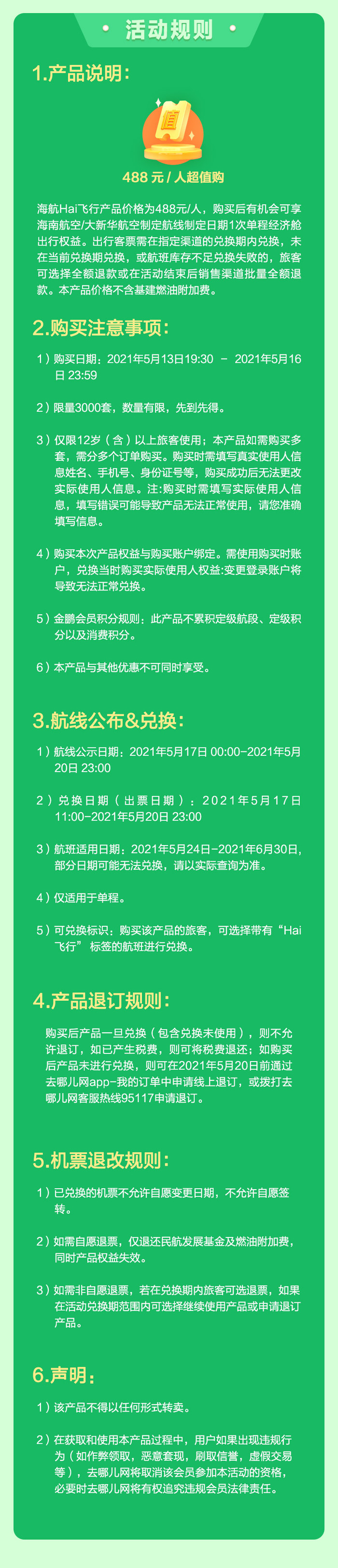 海航新一期hai飞行套票,价格488元,可兑换一张单程机票,加上50元税费538元,比以前明显贵了(前几期hai飞行价格分别为299、399)。每人可以买多套,未用可于5.20之内全额退。