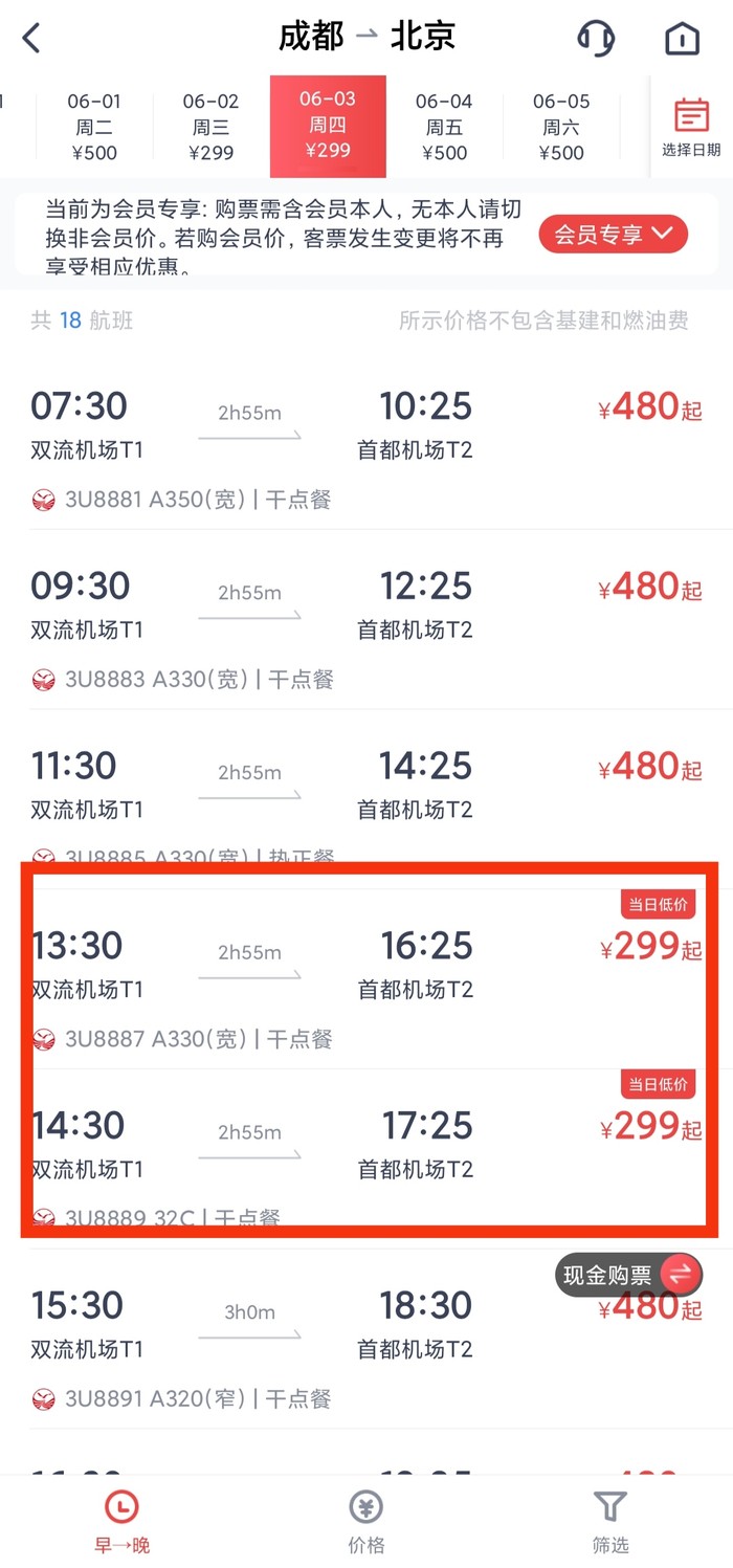 在这个出行时间段内,川航299元的秒杀价,会比第三方平台更便宜,所以5.17的秒杀还是值得关注的。